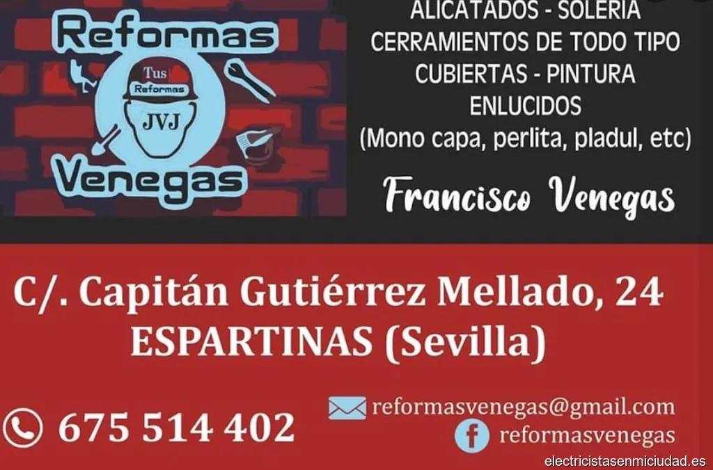 Reformas Electricista Service establishment Contratista de albañilería Pintor Empresa de escayolas Fontanero Empresa de azulejos y pavimentos cerámicosHorario de apertura: